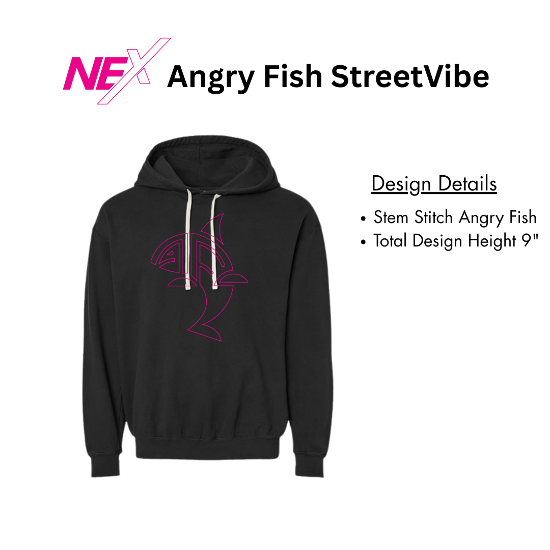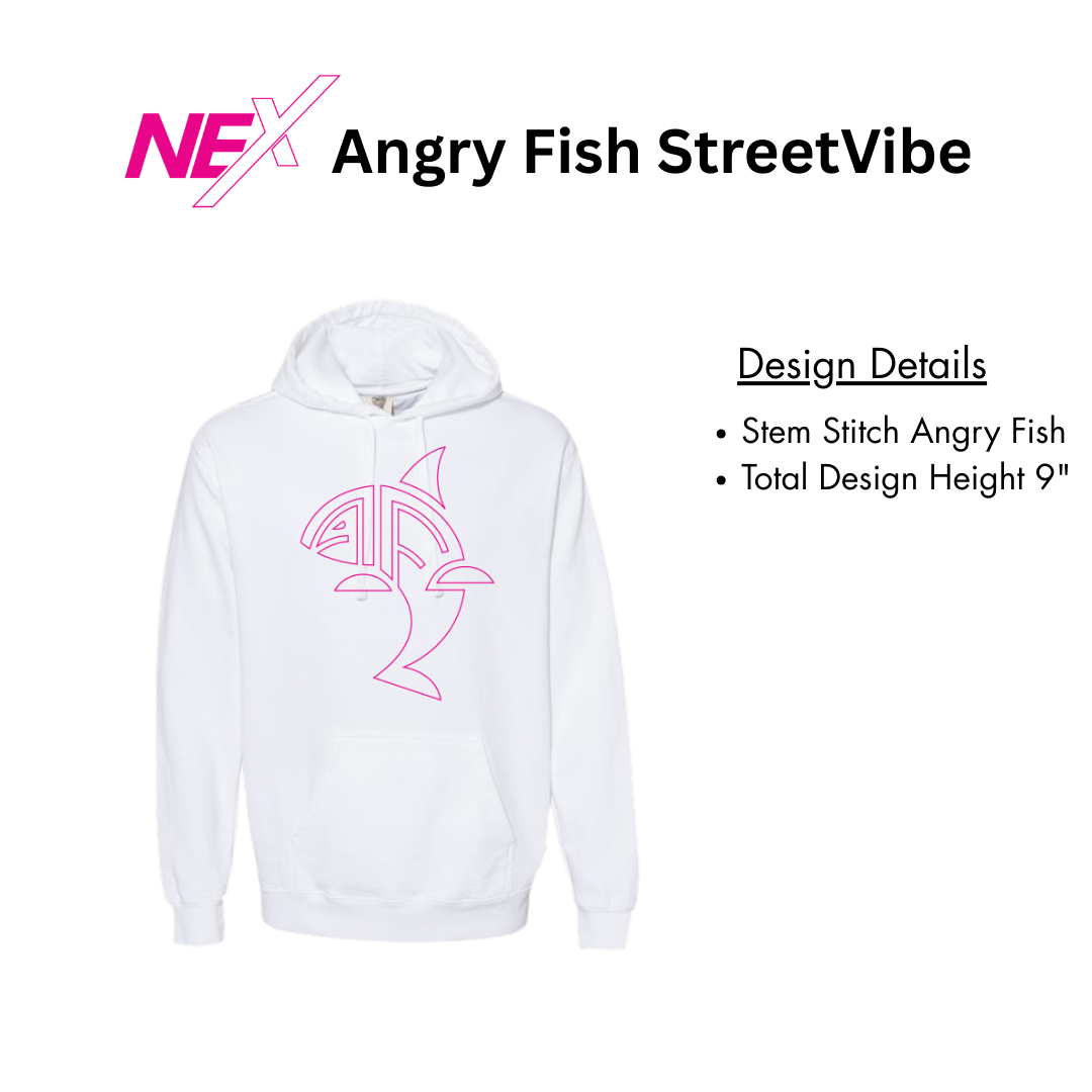 The Angry Fish StreetVibe Hoodie delivers bold streetwear style with a clean edge. Featuring the iconic Angry Fish stem-stitch design at 9 inches tall, this hoodie makes a powerful statement of movement and identity. Available in black or white, it’s built for comfort, culture, and fearless expression.